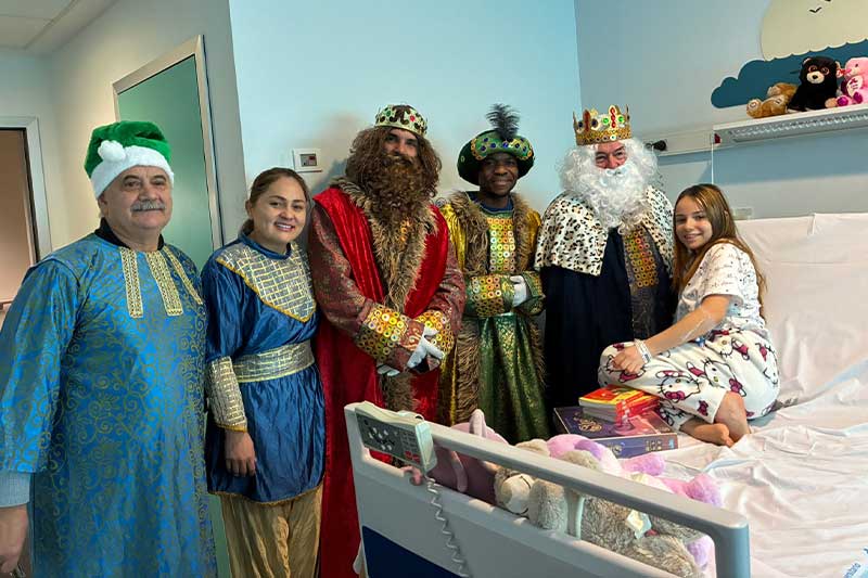 Así, Fernando, Adrián, Luis Romeo, Arturo y Marien han sido recibidos por el director médico del Hospital, Alberto Gironés; por la directora de Enfermería, Magdalena Castro; y por la supervisora de enfermería pediátrica, Eva Pérez, antes de comenzar su recorrido por los pasillos del centro caracterizados como los Magos de Oriente. No han faltado las sonrisas, las fotografías y los guiños a estos personajes que tanto cariño destacan entre pequeños y adultos.