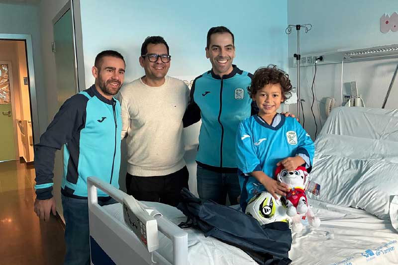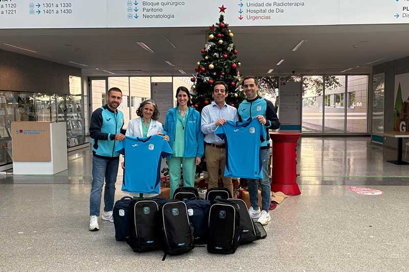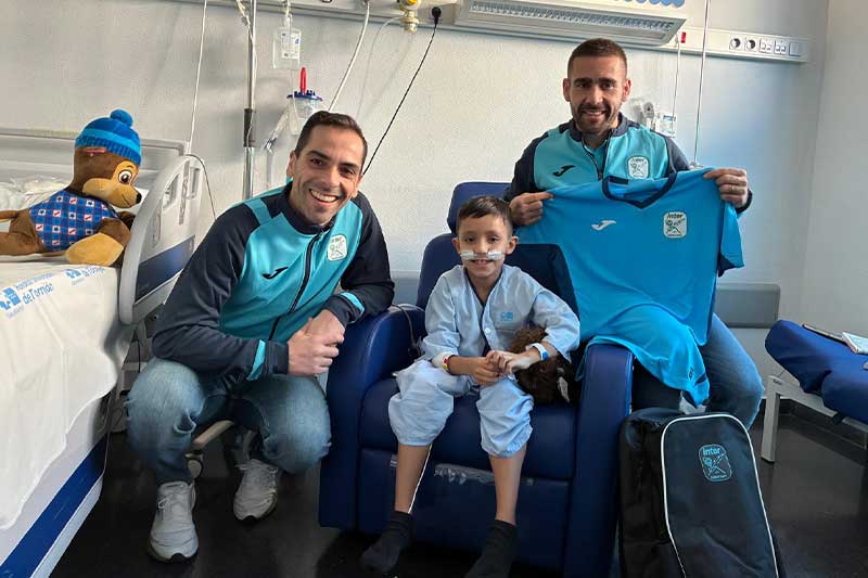 Tampoco han querido perderse su tradicional visita de Navidad los jugadores del Movistar Inter. En esta ocasión, los torrrejoneros Cecilio y Jesús Herrero han acudido al Hospital a seguir repartiendo regalos de parte del club de fútbol sala a los más pequeños. Los capitanes han sido recibidos por el gerente, Santiago Orio, y han dejado mochilas con camisetas, peluches y balones.