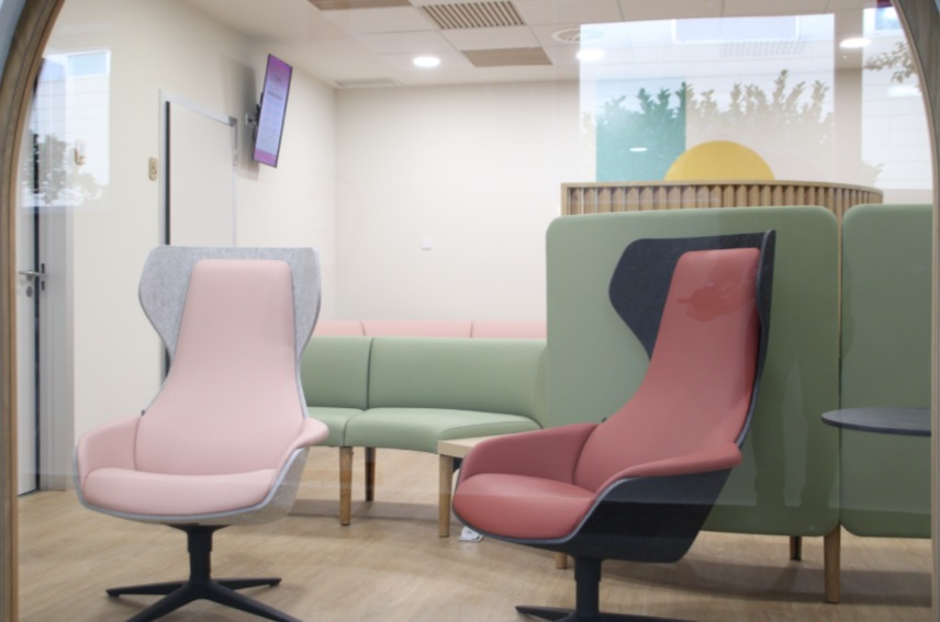 Este nuevo espacio, diseñado con la voz de pacientes y profesionales para atender sus necesidades reales, transforma la antigua sala de espera de Oncología en un entorno cálido, funcional y humanizado.